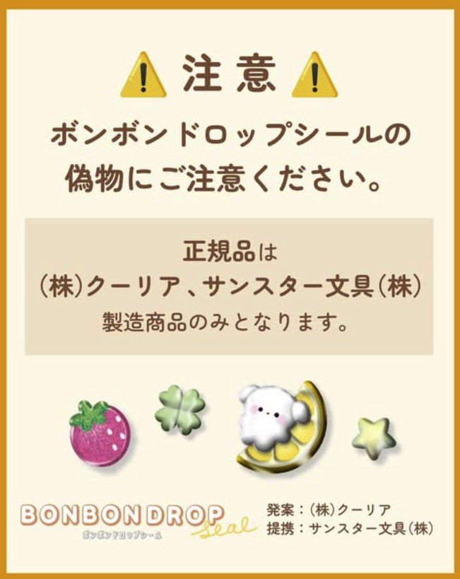 ボンボンドロップシール公式も「偽物に注意」と警告を出すほど、巷にはニセモノが出回っているそうです。