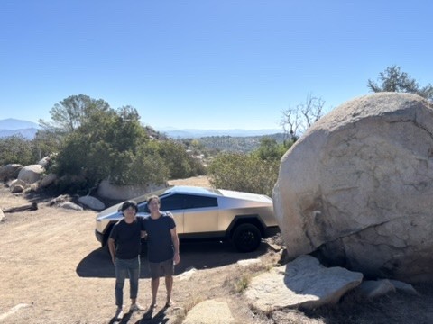 先日は、彼のファミリーと我々ファミリーでキャンプに行ってきました。写真は彼の愛車サイバートラックをバックにした写真です。